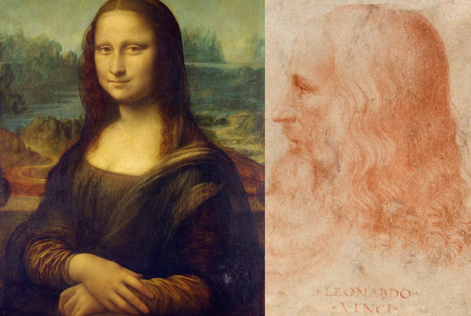 Comparando um autorretrato de Leonardo com a mulher do quadro, verifica-se que as características dos rostos alinham-se perfeitamente.