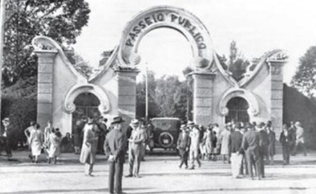 Passeio Público de Curitiba e o seu portão (réplica do Le Cimetière Asnières). Foto de 1930
