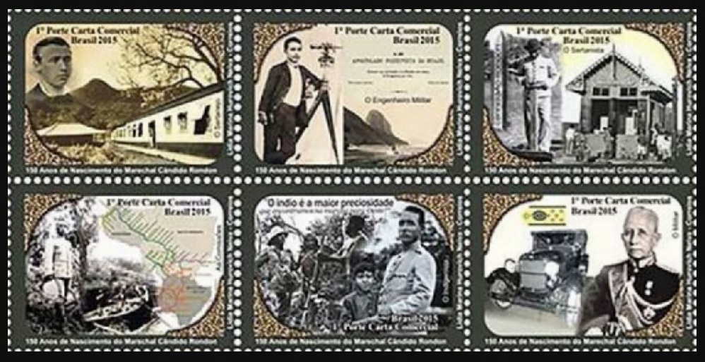 Sextilha de seis selos em homenagem aos 150 anos de nascimento do Marechal Cândido Mariano da Silva Rondon – Acervo Joficur.