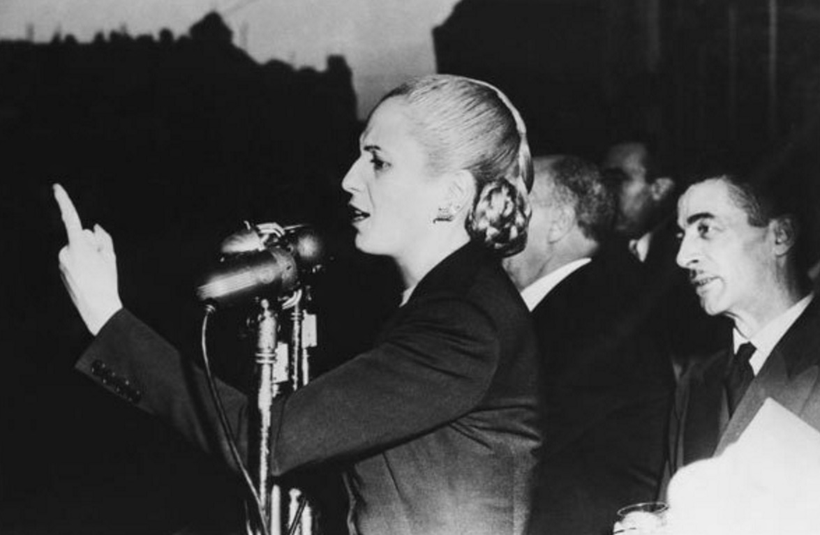 Eva Perón, conhecida como Evita, foi uma atriz e líder política argentina, em campanha eleitoral em 1946.