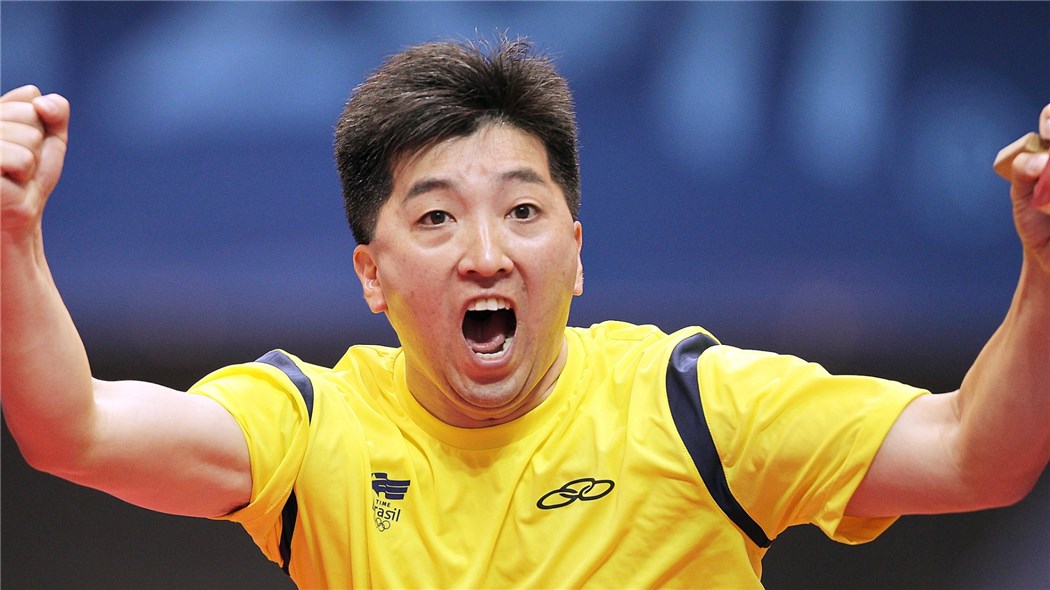 Começou a praticar o tênis de mesa com sete anos de idade, no Palestra de São Bernardo, clube de sua cidade. Em 1985 fez um estágio de nove meses no Japão, treinando na Universidade Nihon Daigaku. Na volta, aos 17 anos de idade, foi convocado pela primeira vez para a Seleção Brasileira adulta.