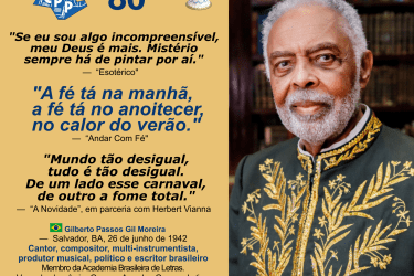 “Minha aura clara, só quem é clarividente pode ver, Fogo eterno pra afugentar, o inferno pra outro lugar.” – Palco • “Se eu sou algo incompreensível, meu Deus é mais. Mistério sempre há de pintar por aí.” – Esotérico • Gilberto Gil, músico brasileiro, vencedor de prêmios Grammy.