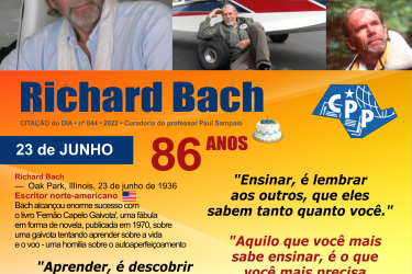 “O que você faria se não tivesse medo?” • “Vê mais longe a gaivota que voa mais alto.” Richard Bach alcançou enorme sucesso com o livro ‘Fernão Capelo Gaivota’, uma fábula de 1970, sobre uma gaivota tentando aprender sobre a vida e o voo – uma homilia sobre o autoaperfeiçoamento