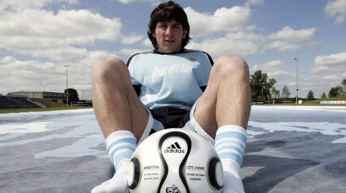 Lionel Messi criança, em Rosário, bem menor que os colegas da mesma idade.