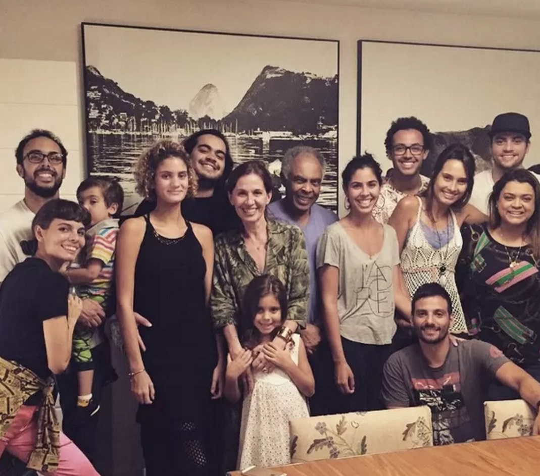 Gilberto Gil em festa com a família. Esposa, filhos e netos.