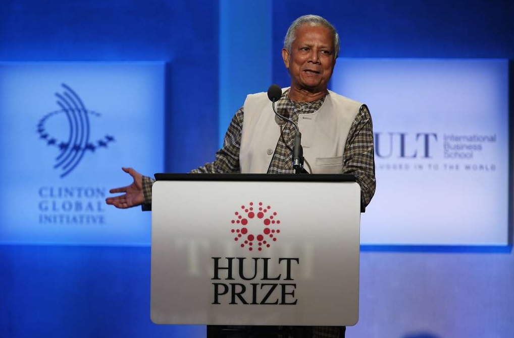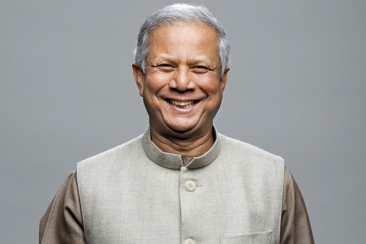 Pretende acabar com a pobreza através do banco que fundou, do qual é presidente e o governo de Bangladesh é o principal acionista, o Grameen Bank, que oferece ativamente microcrédito para milhões de famílias.
