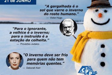 “A gargalhada é o sol que varre o inverno do rosto humano.” – Victor Hugo • “O inverno deve ser frio para quem não tem memórias quentes.” – Deborah Kerr • “O inverno é uma estação de recuperação e preparação.” – Paul Theroux