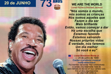 “Nós somos o mundo, nós somos as crianças, Nós somos aqueles que fazem o dia ser mais brilhante, Então, vamos começar a dar, Há uma escolha que estamos fazendo, Estamos salvando nossas próprias vidas, É verdade, nós faremos um dia melhor, Só você e eu.” – Lionel Richie e Michael Jackson • ‘We are the World”.