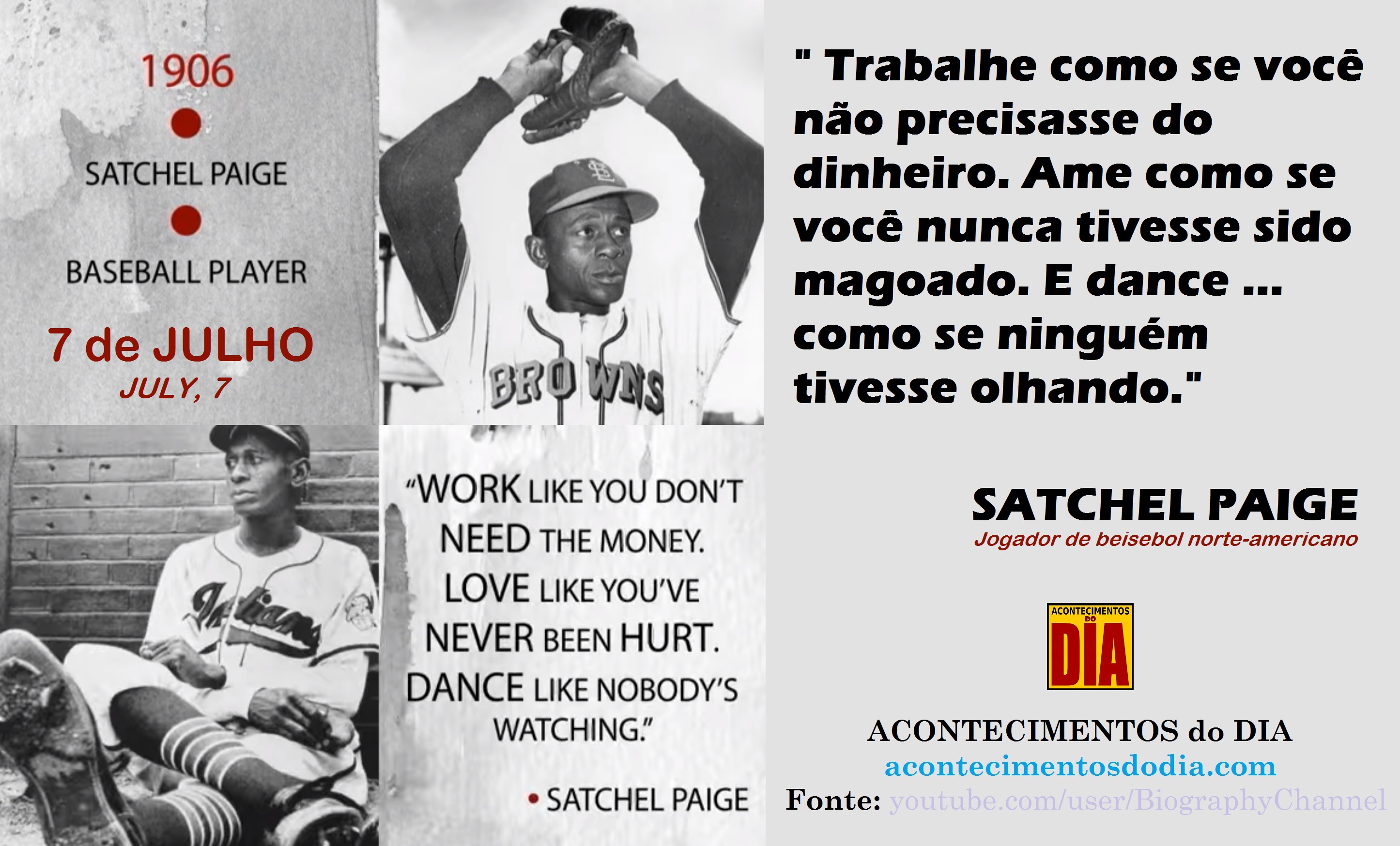 1906 – Satchel Paige ▒ Leroy Robert “Satchel” Paige (7 de Julho, 1906 – 8 de Junho, 1982) era um beisebolista americano, que atuou em diversas ligas como a Negro leagues e a Major League Baseball.