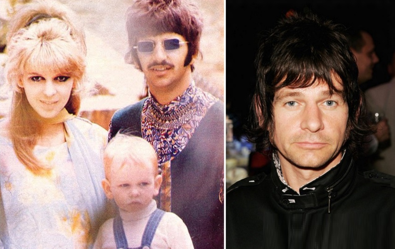Ringo Starr e sua esposa Maureen Cox, com o filho Zack Zak Starkey ainda pequeno, e adulto, em destaque (dir.).