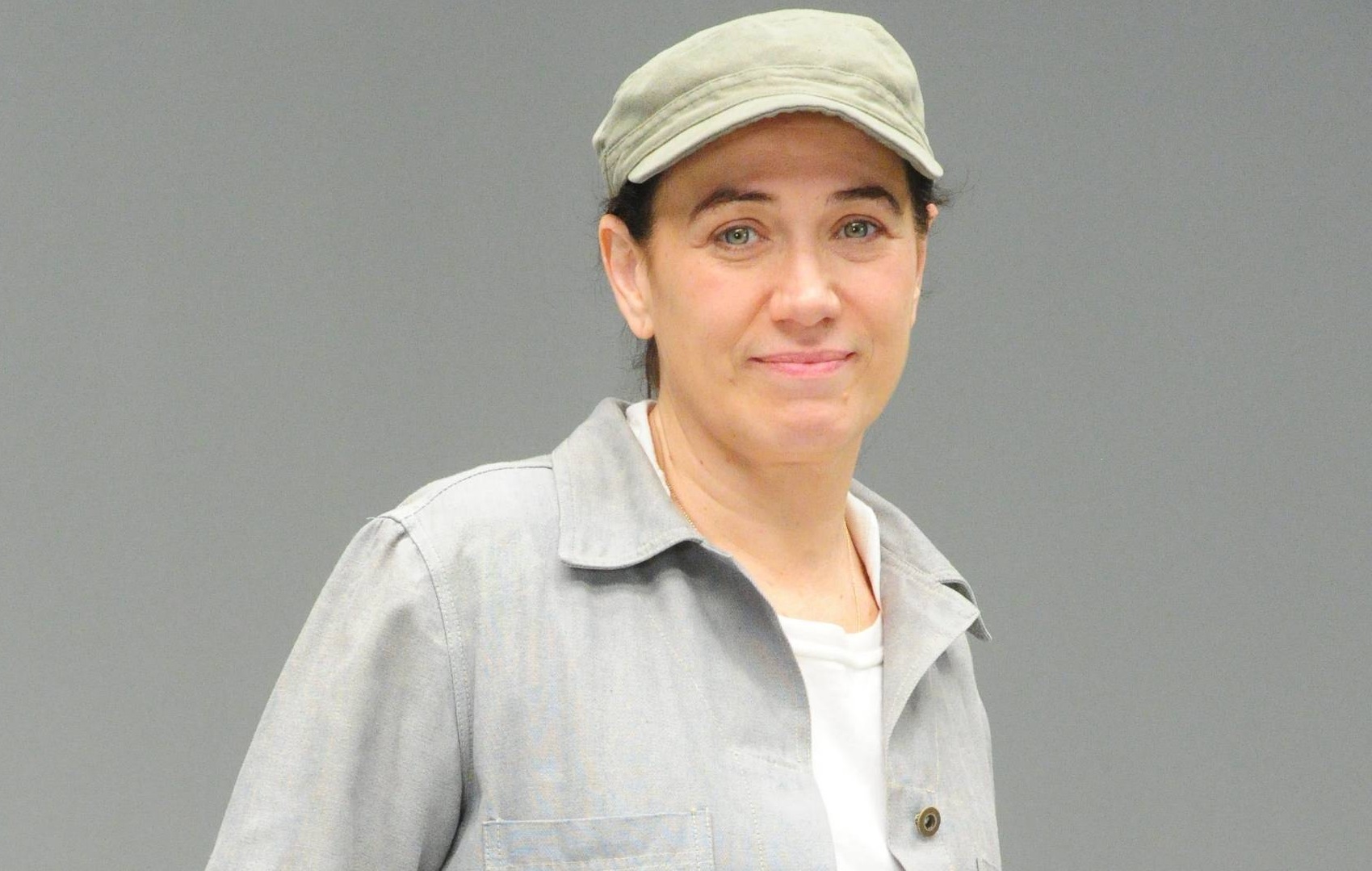 Lília Cabral em foto careca, para a construção da personagem.