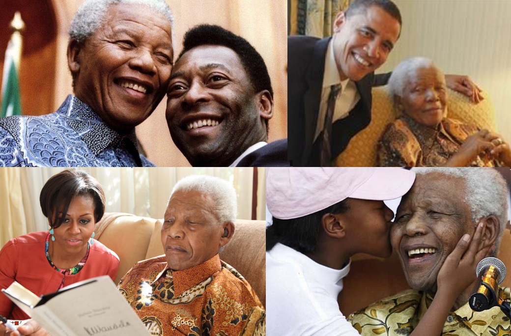Nelson Mandela com Pelé, Barack e Michelle Obama.